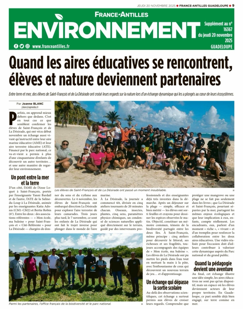 Le projet « A la découverte des réserves naturelles de La Désirade et de Petite Terre », soutenu par l’OFB inscrit l’éducation à l’environnement dans le quotidien scolaire des enfants, renforçant leur lien avec le territoire et la nature.